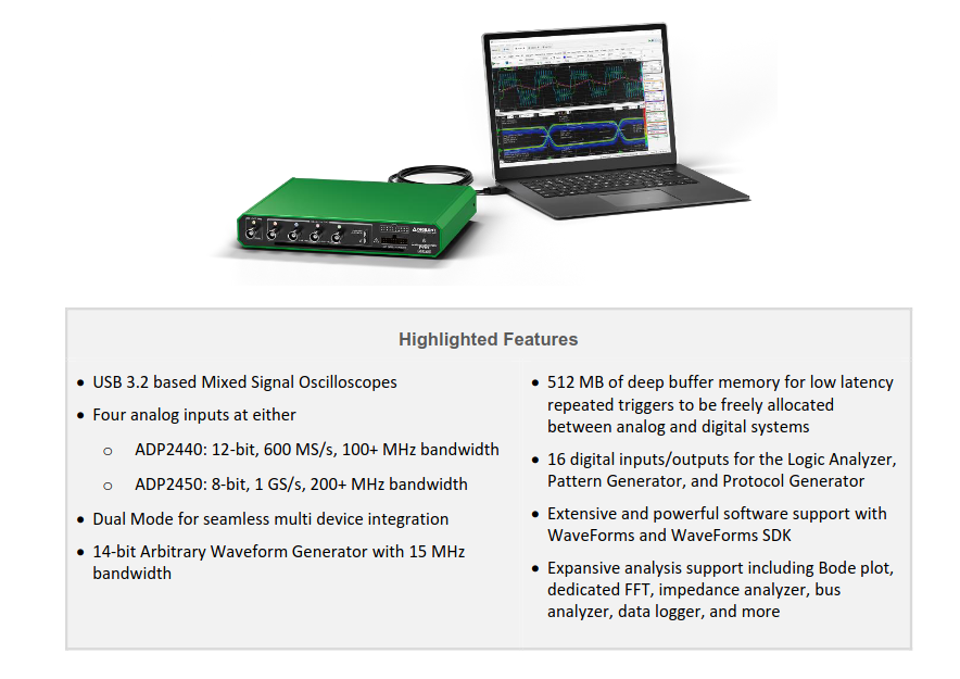 Digilent Analog Discovery Pro 2440/2450 – Oszilloskope mit umfangreichem Digital EA-Komplement.